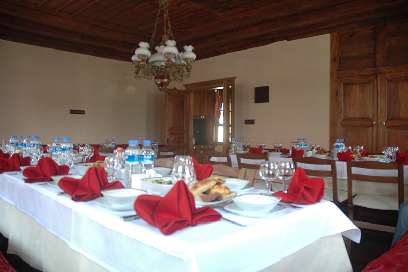 Konağa giriş, taş yapı tarzı ile diğer 3 kat ise ahşap yapı tarzı ile toplam 4 kat olarak inşa edilmiş olan konağımız “Korunması Gereken Tescilli Kültür Varlığı”dır. Dönemin gayri Müslim ailelerinin yaşadığı konağımızda bölgenin şaraphanesi ve şarap mahzeni de bulunmaktadır. Aslına uygun olarak büyük bir gayretle restore edilen konağımız, Kültür ve Turizm Bakanlığı “Özel Konaklama Tesisi” belgelidir. Konağımız 105 yıllık bir tarih ve kültür mirasıdır. Konağımızda siz değerli misafirlerimizin beğenisine ve kullanımına sunulmuş tarihi eşyalarımız da bulunmaktadır. Şaraphanesi ve mahzeni ile taş yapı tarzıyla ahşabın uyumunun eşsiz bir şekilde sergilendiği konağımızda 10 yatak odası, 20 kişilik kapasitesi ile odalara gizlenmiş günümüzün en son teknolojilerinden de faydalanılarak oluşturulmuş konforlu banyoları ve uyumlu tarihi eşyaları ile siz değerli misafirlerimize huzurlu ve samimi bir alternatif tatil imkanı sunuyoruz.